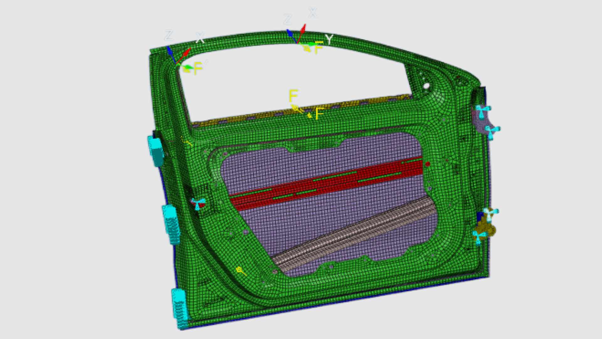 车门作为车身结构中的一个重要组成部分,其刚度和强度对车辆的安全性、舒适性和可靠性都有着直接的影响。如果车门的刚度和强度不足,可能会导致车门变形、卡死、关闭力增大、密封不严等问题,从而影响车辆的品质和安全性。通过车门刚强度分析,可以预测和评估车门的性能,优化和改进车门的设计和制造工艺,提高车辆的整体性能和安全性。此外,车门刚强度分析还可以为车辆的结构设计提供支持和参考,有助于提高车辆的结构效率和轻量化设计。