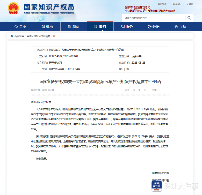 近日,国家知识产权局正式批复,同意位于坪山区新能源汽车产业园的北京理工大学深圳汽车研究院建设新能源汽车产业知识产权运营中心。